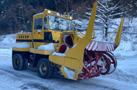 今回は、地質ボーリング調査のため冬期間通行止め区間の除雪。橋の上なので、雪を投下しないように慎重に除雪。