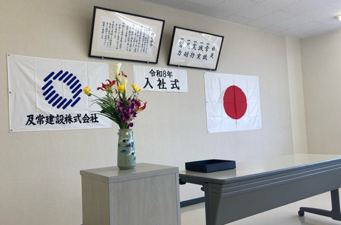 令和8年4月1日に新入社員入社式を行いました。弊社での高卒事務員さんの採用は初めてです。 及川社長からの挨拶と辞令交付。 新入社員...